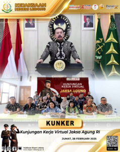 Kepala Kejaksaan Negeri Lebong (Ibu. Evi Hasibuan, S.H., M.H.), beserta para Kasi, Kasubbag Bin, dan seluruh jajaran di Kejaksaan Negeri Lebong, turut serta dalam Kunjungan Kerja Virtual Jaksa Agung Republik Indonesia . Kegiatan ini dilakukan melalui Zoom Meeting sebagai bentuk konsolidasi dan peningkatan kinerja Kejaksaan di seluruh Indonesia.