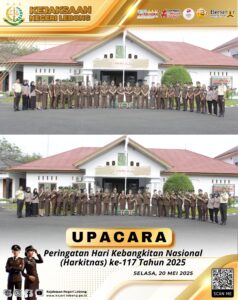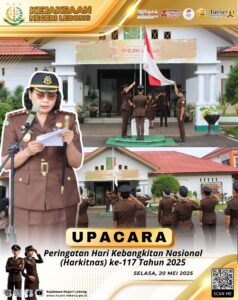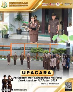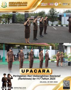 Pada hari Selasa pagi, pukul 07.30 WIB, Kejaksaan Negeri Lebong melaksanakan Upacara Bendera dalam rangka memperingati Hari Kebangkitan Nasional (Harkitnas) ke-117 Tahun 2025. Kegiatan berlangsung di halaman kantor Kejari Lebong dengan diikuti oleh seluruh pegawai Kejaksaan.
