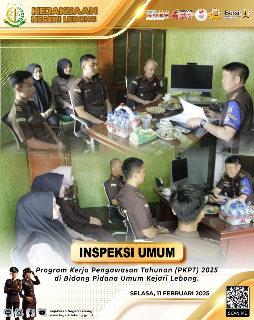 Tim Pemeriksa Bidang Pidana Umum (Pidum) dari Kejati Bengkulu melaksanakan pemeriksaan dalam rangka Inspeksi Umum Program Kerja Pengawasan Tahunan (PKPT) 2025 di Kejaksaan Negeri Lebong.