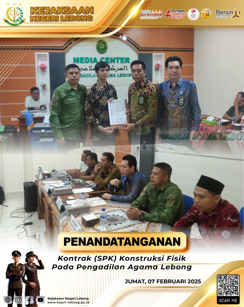 Jaksa Fungsional Bidang Intelijen Kejari Lebong (Hendrizal, S.H.) mengikuti kegiatan Penandatanganan Kontrak (SPK) dan Rapat Pre Construction Meeting (PCM) Pembangunan Pelapis Tebing dan Sarana Prasarana Lainnya Pengadilan Agama Lebong Tahun 2025 yang dilaksanakan di Ruang Sidang Cakra Pengadilan Agama Lebong Kelas II.