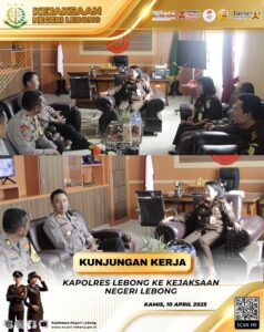 Kunjungan tersebut merupakan bagian dari upaya memperkuat sinergitas antar-aparat penegak hukum di Kabupaten Lebong serta mempererat tali silaturahmi dalam momentum Hari Raya Idulfitri. Dalam suasana penuh kehangatan dan kebersamaan, kegiatan ini berjalan lancar dengan semangat saling menghargai dan menghormati peran masing-masing lembaga dalam menjaga supremasi hukum dan ketertiban di masyarakat.