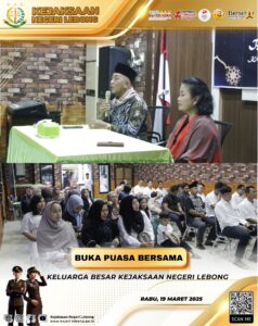 Kejaksaan Negeri Lebong menggelar Buka Puasa Bersama dan Ceramah Agama. Acara ini juga menjadi momen perpisahan bagi dua Kasubsi yang akan bertugas di tempat baru. Suasana penuh kehangatan dan kebersamaan mewarnai kegiatan ini. Semoga sukses di tempat yang baru! 🤝✨