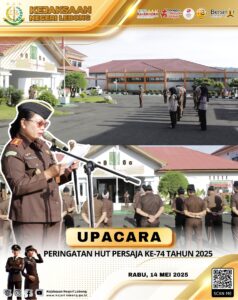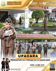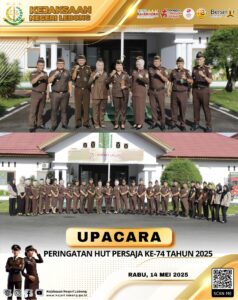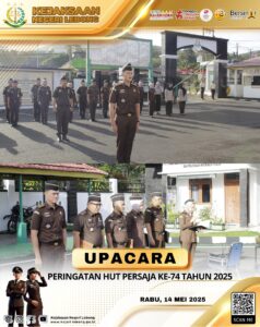 Rabu, 14 Mei 2025 – Kejaksaan Negeri Lebong melaksanakan Upacara Peringatan HUT Persatuan Jaksa Indonesia (PERSAJA) Ke-74 yang diikuti oleh seluruh pegawai Kejari Lebong.